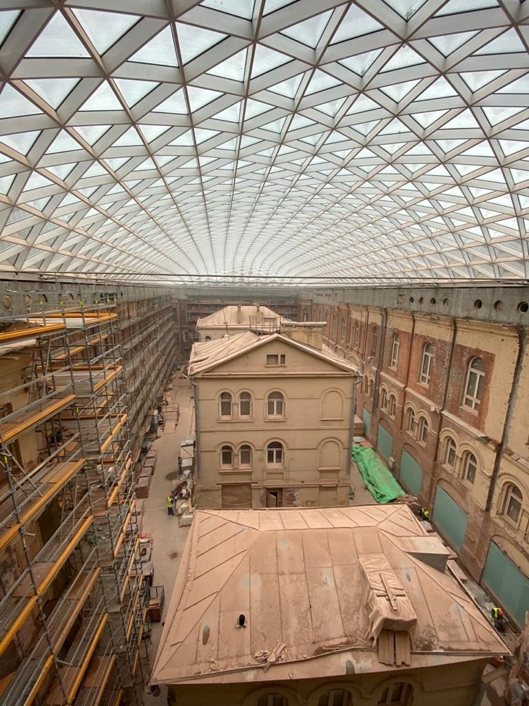 Создание прозрачного купола из стекла и металла над Северным и Южным дворами – одно из важнейших решений в рамках реновации, проводимой специалистами.